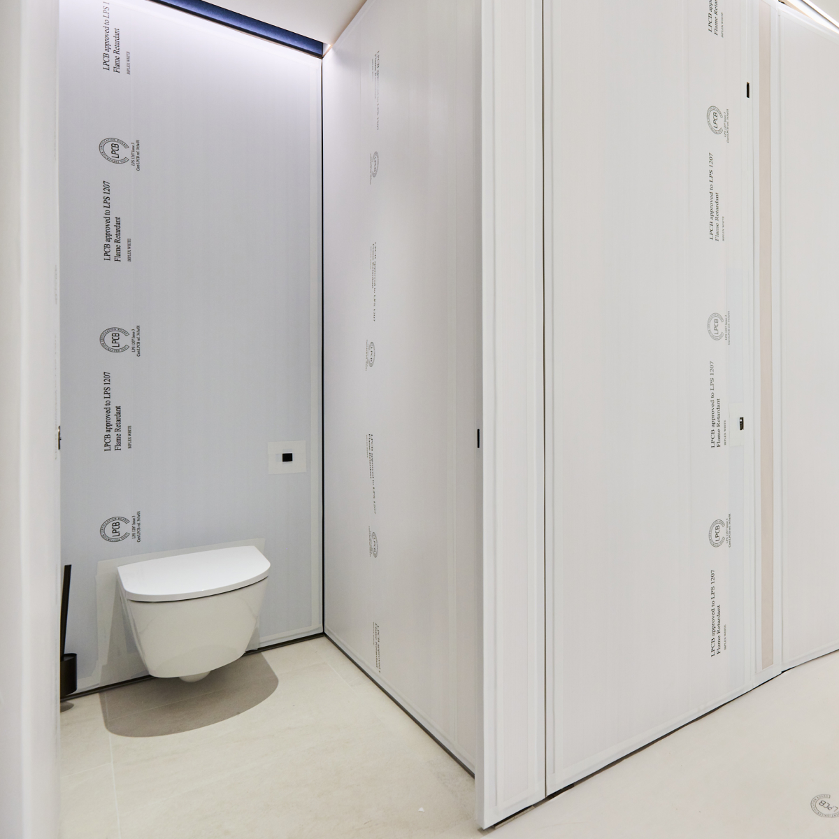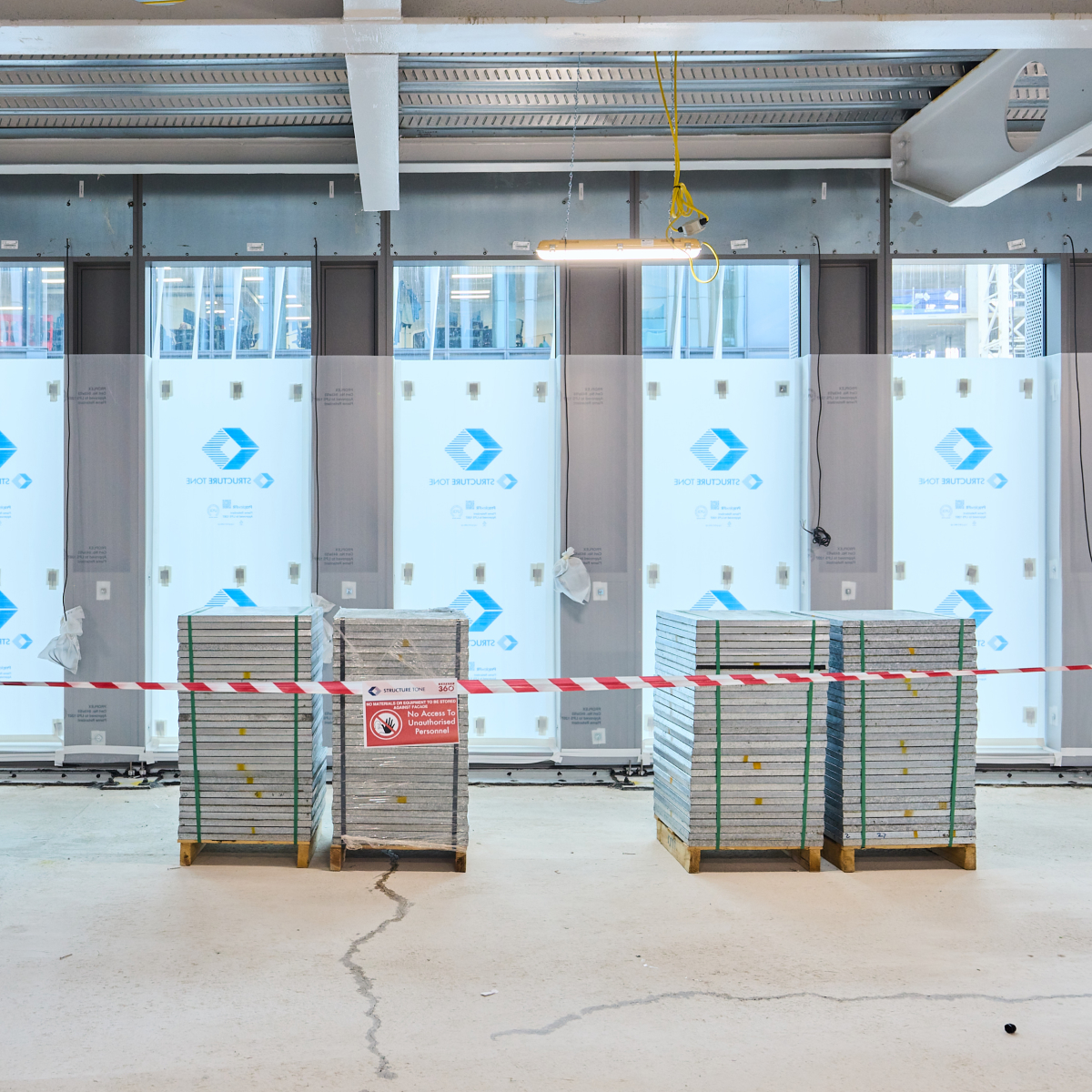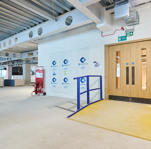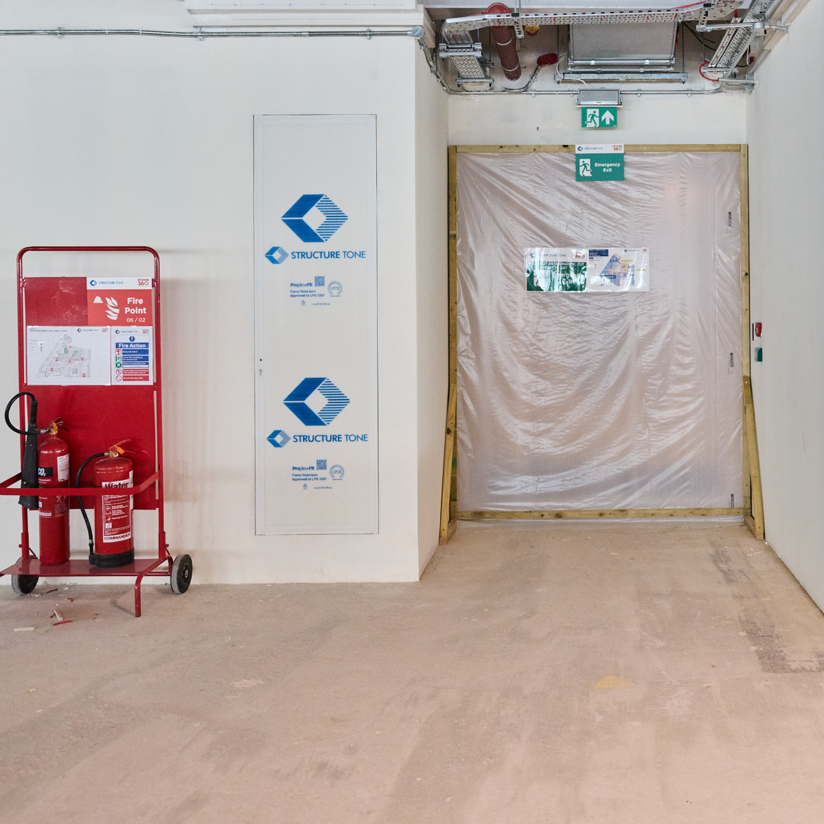 Dedicated teams progressed floor-by-floor installing full protection to the glass façade, lobby areas, and all access routes, alongside setting up waste management points and essential site welfare, including designated toilets. By preparing each level in advance, the works were handed over in a controlled, safe, and ready state, enabling subcontractors to commence immediately, reducing delays, minimising risk of damage, and maintaining programme efficiency.